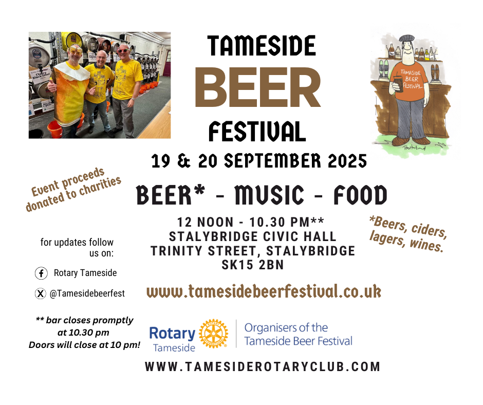 On behalf of Tameside Rotary, I welcome you to the 2025 Annual Tameside Beer Festival.